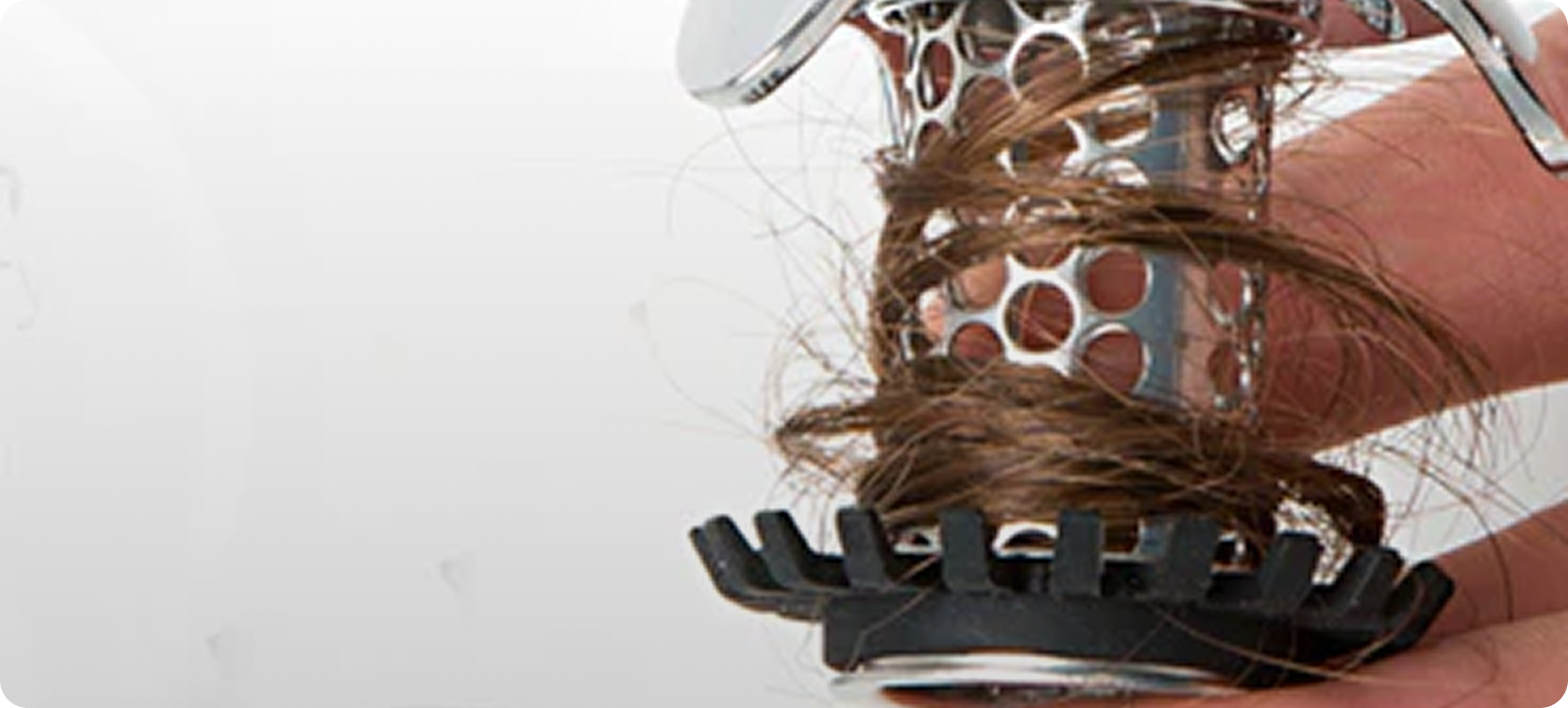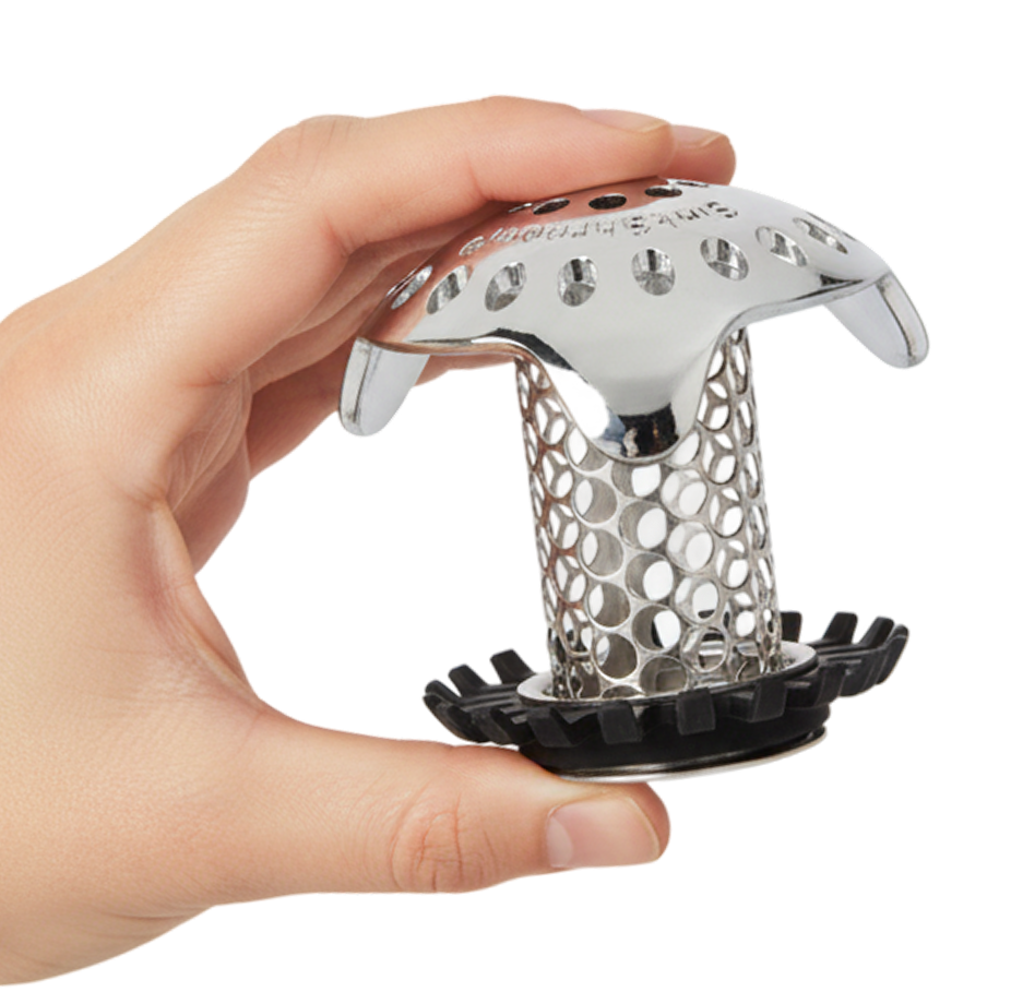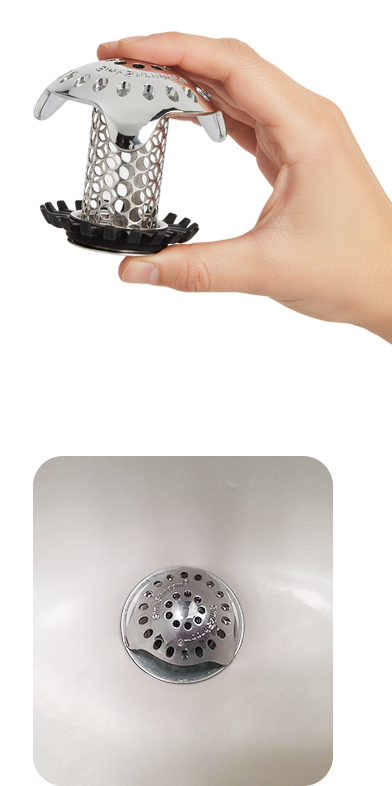 SinkShroom Ultra’s patented design allows water to flow freely while hair wraps neatly around the stainless-steel core.